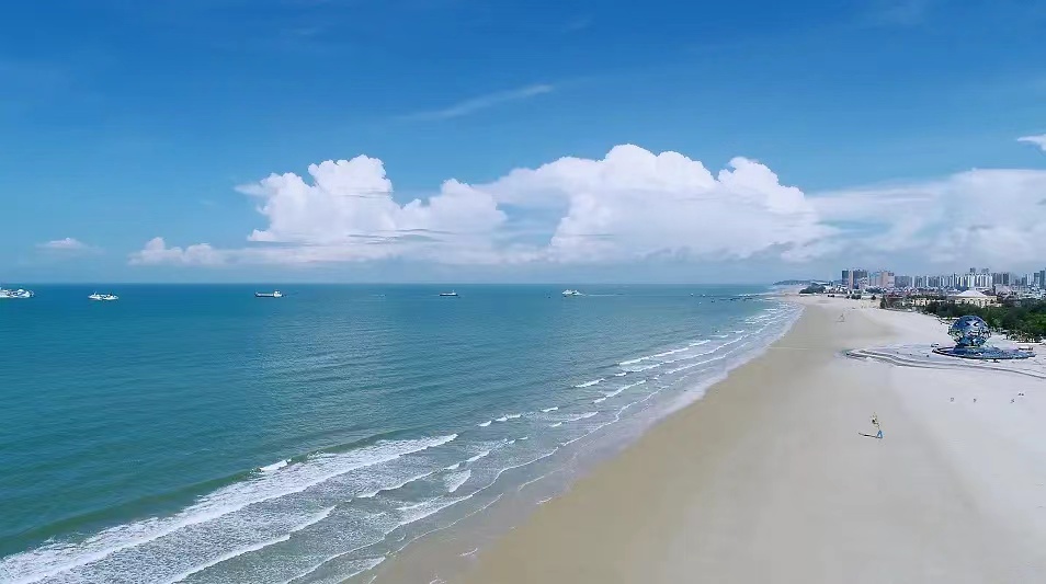 南海扬波北部湾,浪淘白砾②泛边缘。