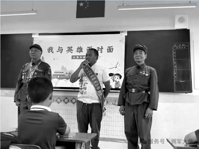 本报讯(《作家报》记者李法明 特约记者欧伟棠报道)2025年10月15日,中山市古镇镇曹三小学四(1)班的课堂里格外庄重热烈。学校特别邀请到对越作战老兵、中山市古镇退役军人红旗志愿服务队创始人孙金焕同志,为同学们带来了一场沉浸式爱国主义教育活动,让红色基因在少年心中悄然扎根。