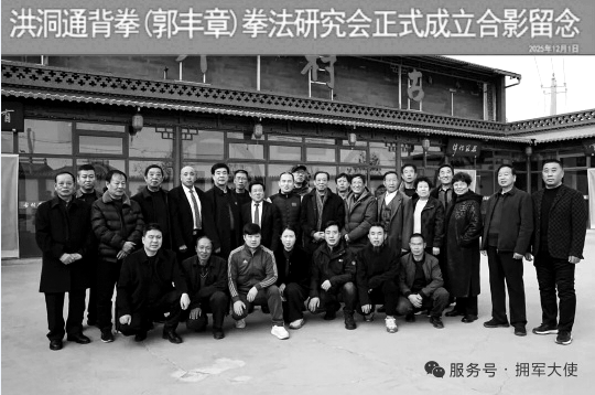 郭丰章一生秉持“朴素务实、全心为民”的信条,教导子女传承中华武术,以“强身健体、保卫祖国”为己任。此次研究会的成立,正是对其武学精神与爱国情怀的传承延续。仪式上,与会领导一致表示,研究会将以“传承传统武术、践行拥军使命”为核心,在张胜、王宝红、徐正龙等人的带领下,深挖郭丰章拳法的武学价值与红色内涵,既推动洪洞通背拳走向更广阔的舞台,更让“忠勇爱国、拥军优属”的精神代代相传。
