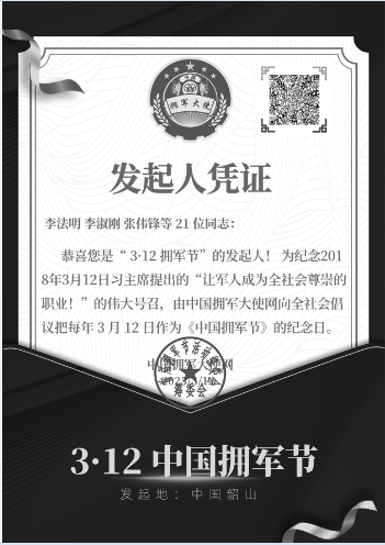 在这个特殊的“3·12拥军节”,我们向大家发出如下倡议: