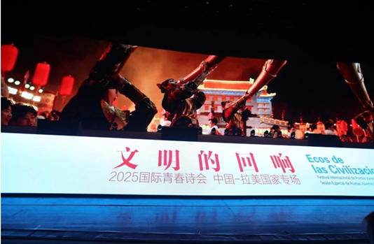 文明因交流而多彩,文明因互鉴而丰富。诗歌的旅程不止于今夜,在接下来的行程中,诗人们将分别在西安、商洛、北京参加一系列丰富多彩的文化活动,通过诗歌朗诵、学术对话、诗歌座谈、实地走访等,沉浸式体验中华文明魅力和中国式现代化成就,深入理解现代中国的文化根基和社会发展,进一步推动中拉文明互学互鉴,共同书写属于中拉青春诗坛的崭新篇章。(中作)