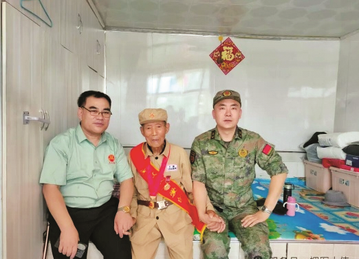 慰问即将结束时,闵永林老人哆哆嗦嗦地扶着桌子站起身,尽管行动不便,他仍努力挺直腰板,向陈德旭郑重地行了一个军礼。陈德旭立刻立正回礼,两位相隔数十年代的军人,在这一刻完成了一场跨越时空的致敬。老人热泪盈眶,用不太清晰的声音反复说着:“中国共产党万岁!感谢党,感谢政府!”这一幕让在场的志愿者无不动容。